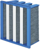 Plisseret filtermedie med aktivt mikrogranuleret kulstof installeret i en formstabil og robust V-formet plastramme. Anvendes i applikationer, hvor der kræves gaskoncentrationer og en kompakt indbygning.